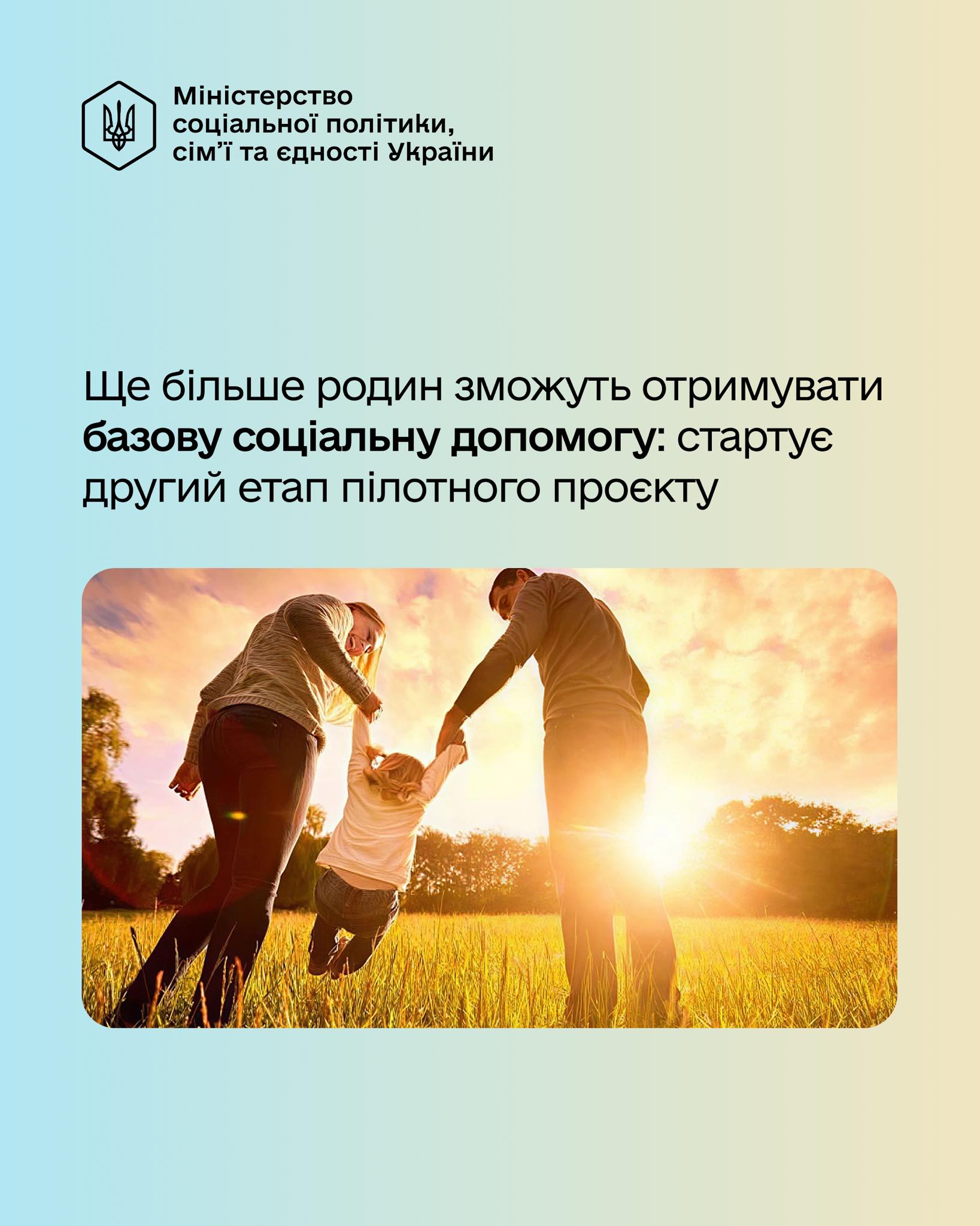Розпочинається новий етап експериментального проєкту з надання базової соціальної допомоги. Відтепер розширюється перелік категорій отримувачів — оформити та отримати допомогу зможе більша кількість родин з низьким рівнем доходів, зокрема й ті, які раніше не були отримувачами конкретних видів соцдопомог.