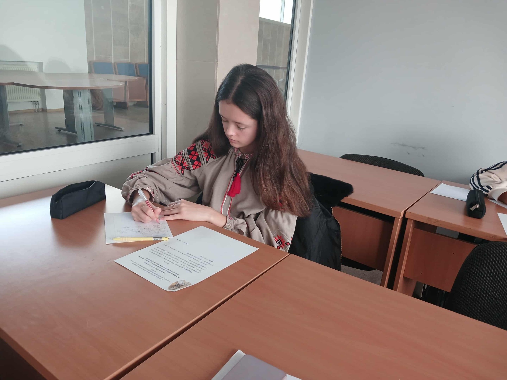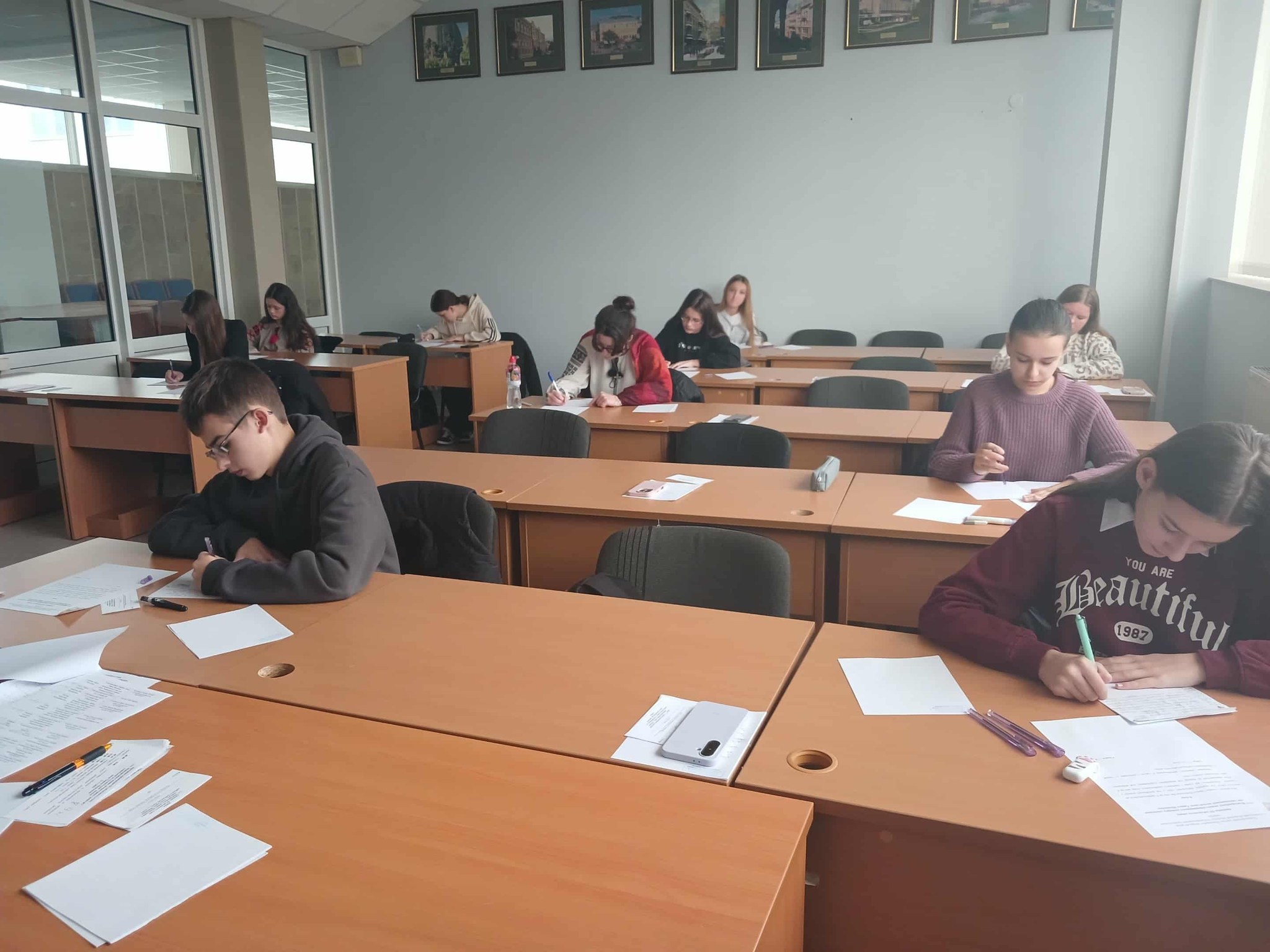 учні сидять в аудиторії за партами та пишуть