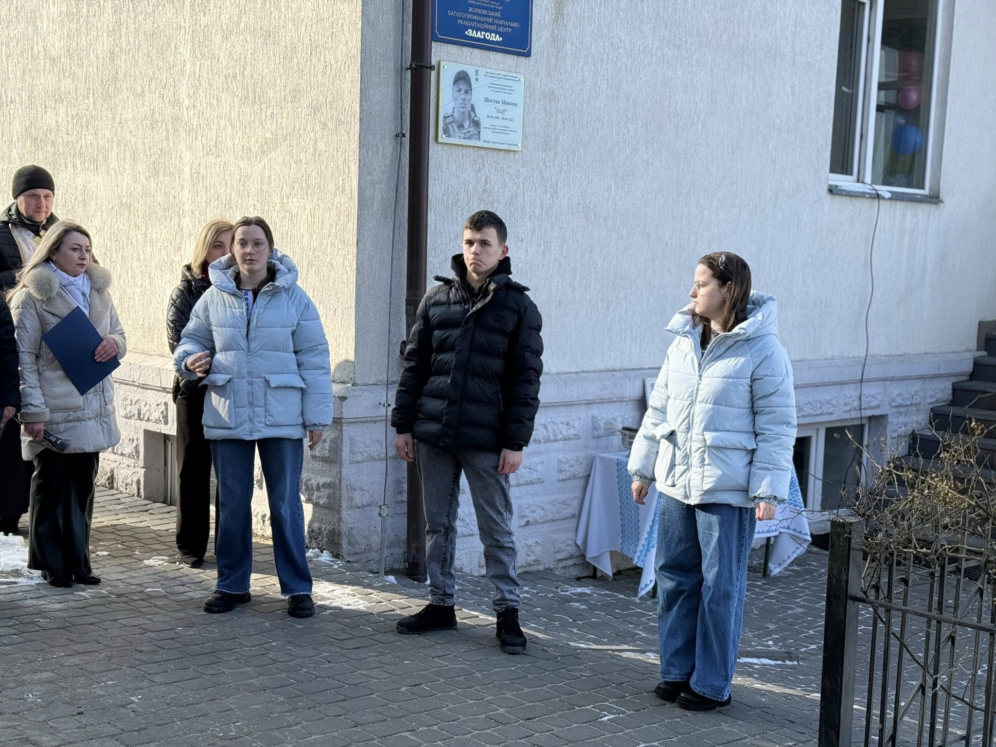 На фасаді Жовківського багатопрофільного навчально-реабілітаційного центру «Злагода» встановили пам’ятну дошку випускнику закладу, жовківчанину Миколі Шостаку.
